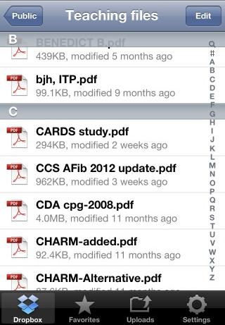 That is a great article. There is a similar cloud based service similar to Dropbox called Evernote. Evernote has similar features including the ability to tag your notes and also has search for words that are visible in a photograph. For example, you can photograph a presentation slide and Evernote will put image through OCR so that you can later search for word. Like Dropbox, Evernote is platform agnostic and seems just a little “smarter”. The other feature, compared to some of the cloud drives is that all the data can be stored on your device, and is immediately accessible, and there is an excellent markup system to highlight notes. There is also a related app called Penultimate for iPad that exports written notes directly to Evernote. Evernote also has a calendar to-do function with reminders. I use both systems, but use Dropbox more for archival backup storage. I use Evernote daily and at this time have over 5000 notes. It has been particularly useful for board review!
